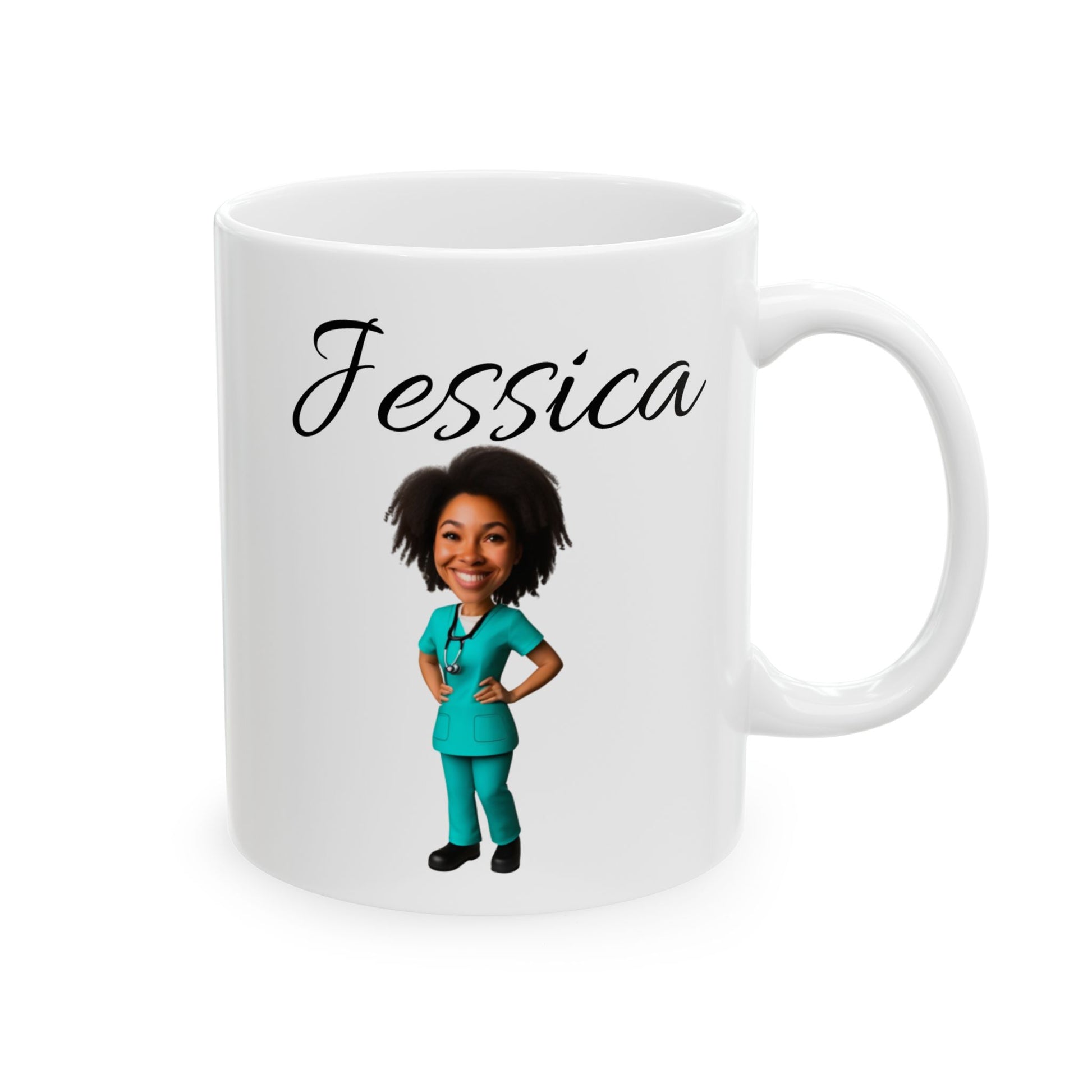 Turn any nurse, CNA, LPN, RN, or medical professional into a fun, energetic nurse character — printed on a durable ceramic mug they’ll use every day.